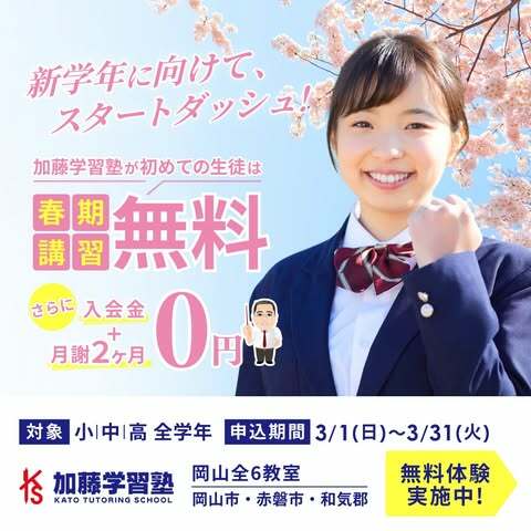 - 加藤学習塾では、新年度のスタートを迎える前に、生徒の学力向上をサポートするため、春期講習を実施いたします。