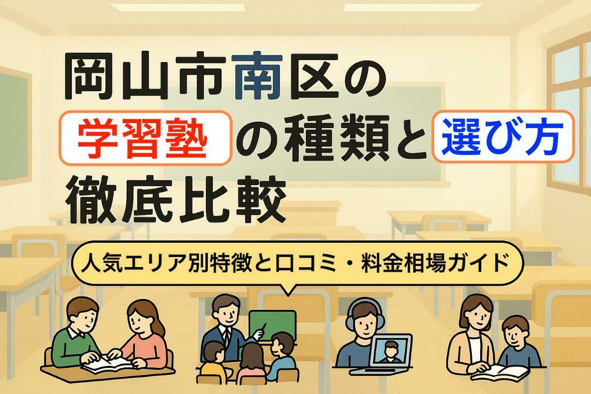 岡山県岡山市南区は、教育意識が高い家庭が多く、学習塾の選択肢も豊富です。通学や生活圏に合わせて塾を選ぶことができるのが、このエリアの魅力です。最近では、岡山学芸館高校や岡山芳泉高校など、難関校受験を目指す生徒が増え、個別指導や集団指導だけでなく、オンライン塾や個人塾のニーズも高まっています。駅周辺や住宅街には多彩な教室が点在しており、アクセスの良さや教室の雰囲気、口コミ評価も塾選びの大切なポイントです。